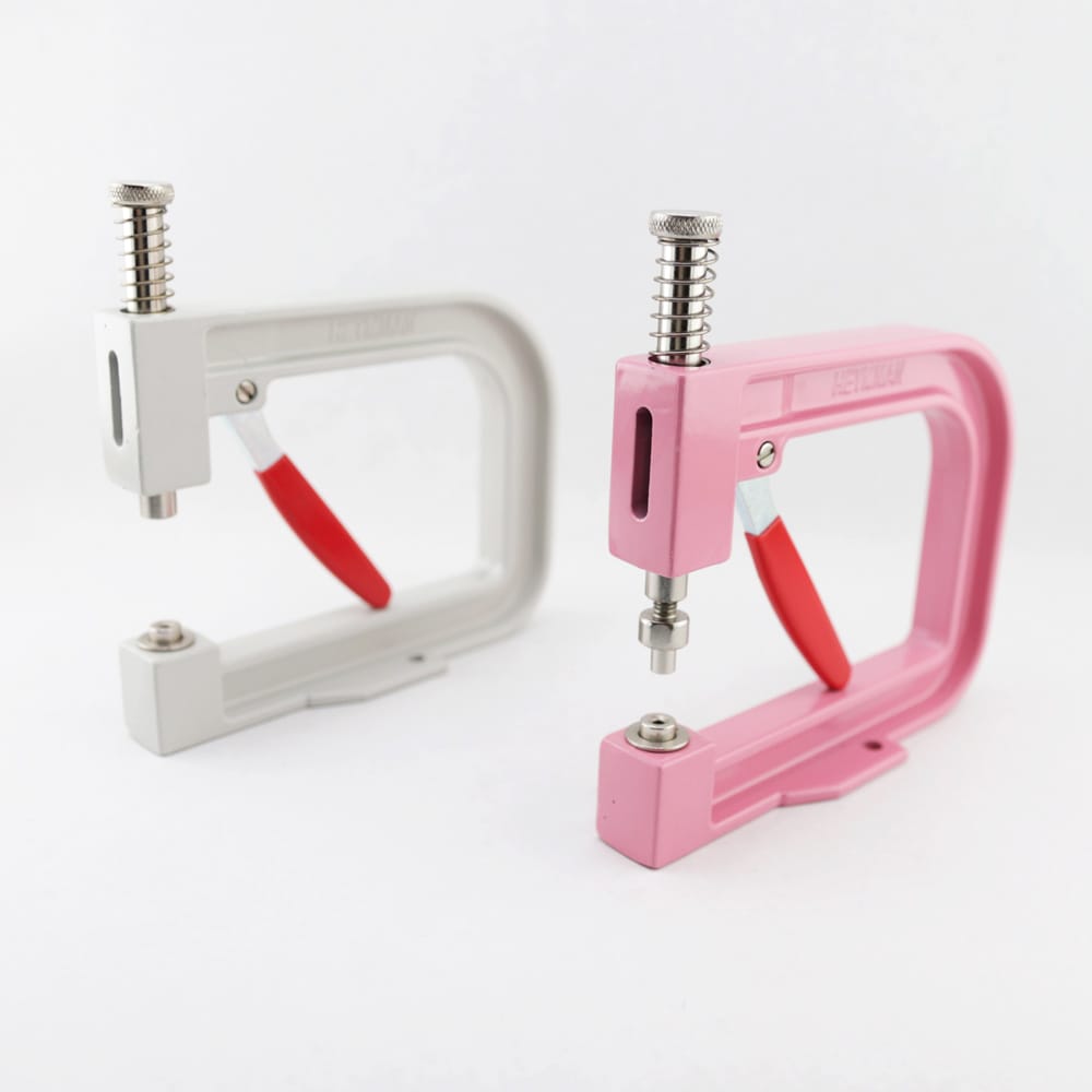 Basta colocar a pérola na parte de cima da matriz, colocar o tecido entre as matrizes e apertar o gatilho. Simples assim!
