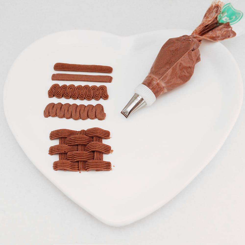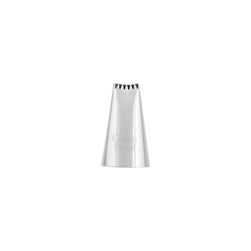 Dos mais variados tamanhos e formas, você consegue criar escritas, flores, folhas, babados, estrelas, conchas e o que mais a sua imaginação permitir. O bico número 47 possui um lado serrilhado e um lado liso, ficando a escolha do confeiteiro o acabamento que será utilizado.