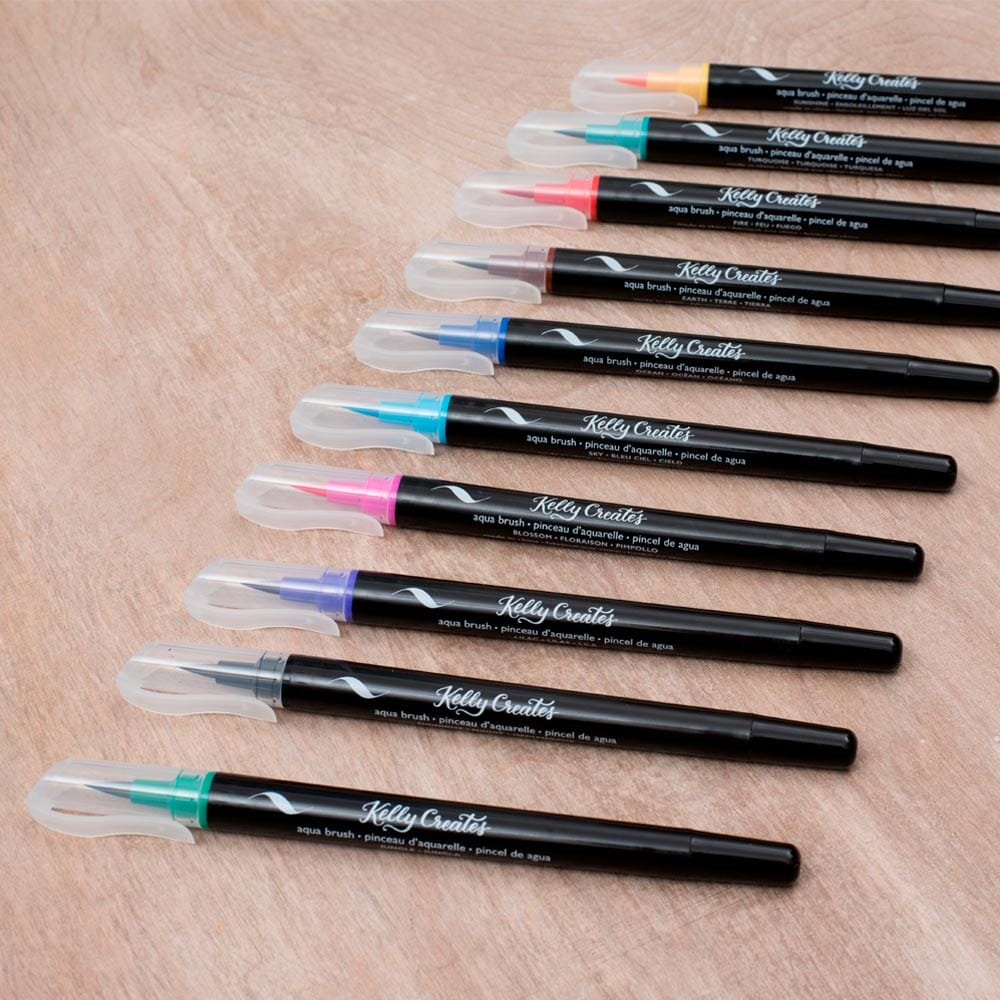 As Canetas Aquarela Kelly Creates possuem alto poder de pigmentação, com tinta à base de água flui livremente através da ponta da escova de cerdas, de alta resistência.