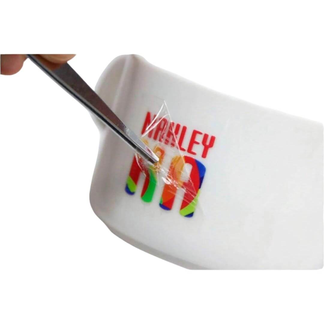 Aplicação: Posicione o adesivo do filme “A” no objeto e pressione.