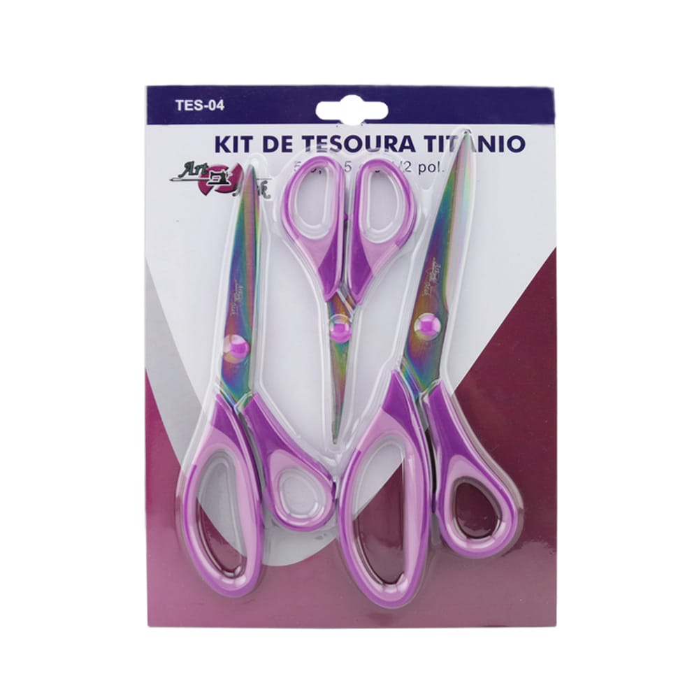 O Kit Tesouras Titanium Art Mak é composto por três tesouras de diferentes tamanhos, ideal para utilizar em seus projetos de costura e patchwork.
