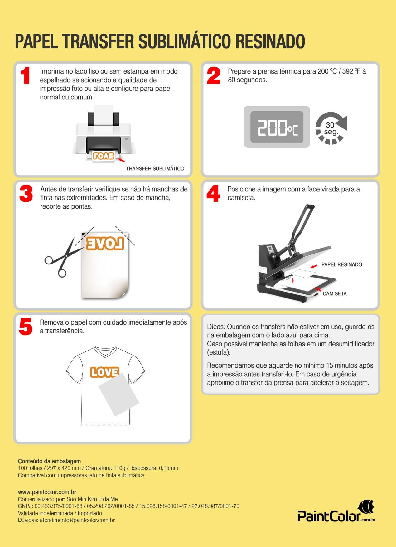 2º – Colocar o papel com a parte frontal virada para o produto que deseja estampar;