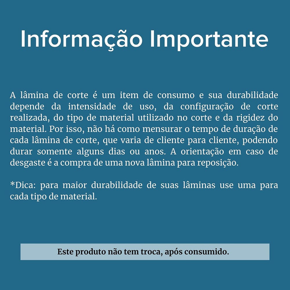 - Faça sempre teste de recorte, antes de iniciar os trabalhos.