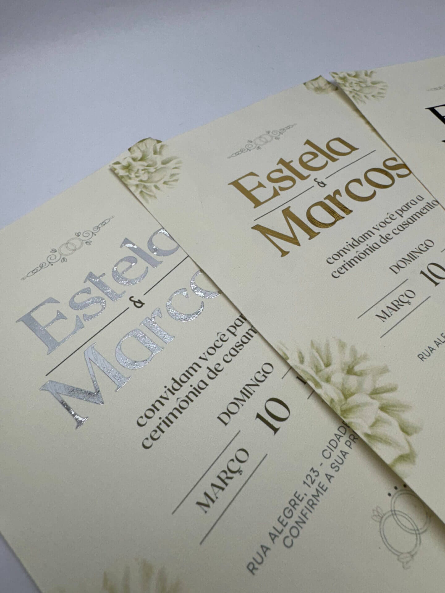 - Cores Metátlicas: dourado, prata, rose gold, marrom, verde, royal, camaleão, sprectrum, vermelho, confete prata e confete dourado