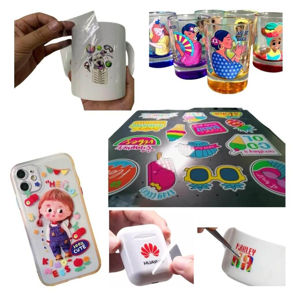 O que é DTF UV Metálico: Tecnologia de impressão de alta qualidade para superfícies rígidas. A imagem é impressa em um filme e depois transferida para o objeto, criando um acabamento durável, com leve relevo e efeitos especiais (verniz, texturas). Ideal para personalização de brindes Canecas, vidros, plásticos, metais, madeira, couro.